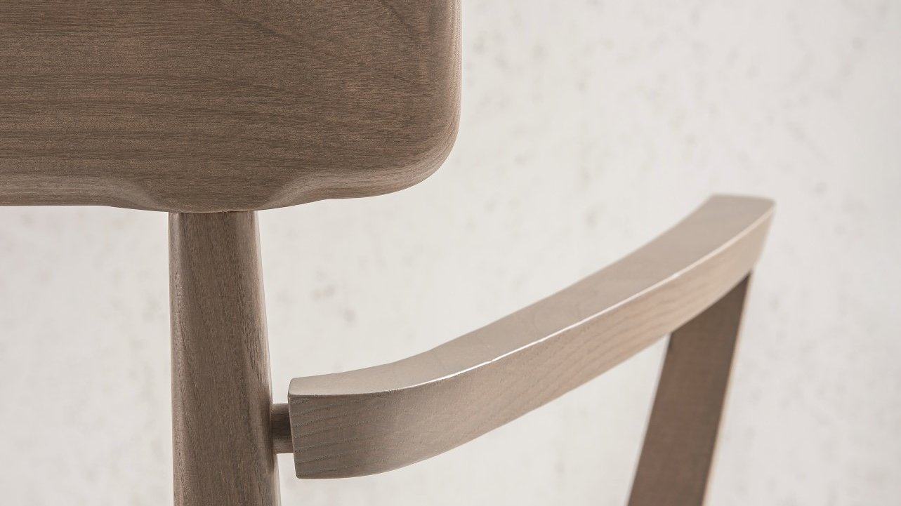 The COCO collection offers a classic kitchen chair, a chair with armrests and a bar chair. All variants are available with a plywood seat or upholstered seat.