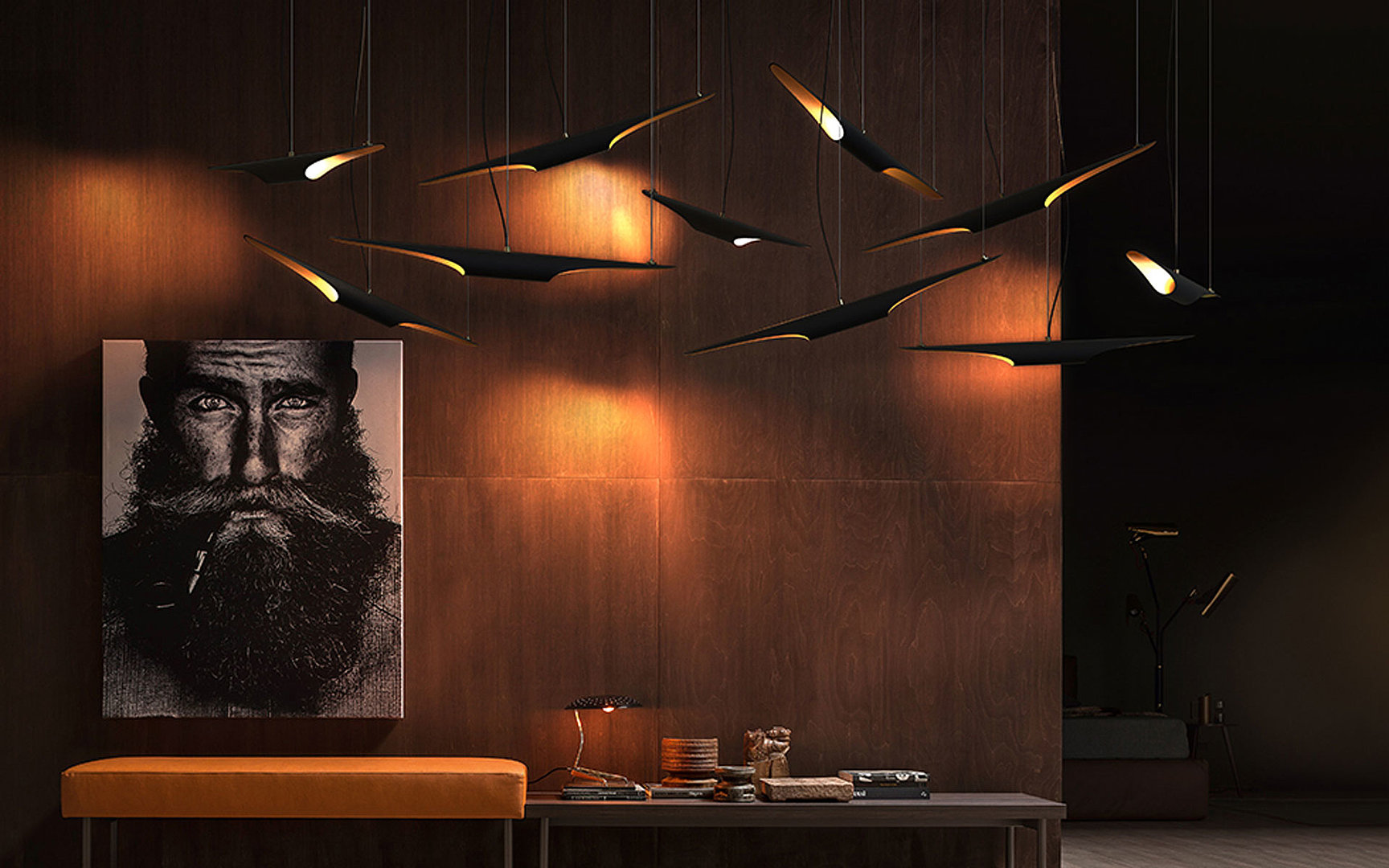 With this lamp, it is possible to change the angle of inclination using the length of the suspension.