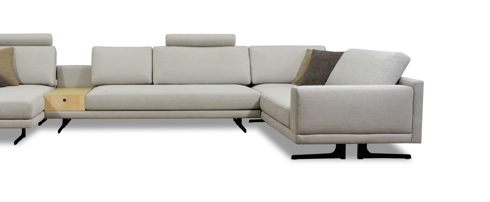 Vďaka širokej škále modulárnych dielov si môžete sedacie súpravy LAND zostaviť podľa svojich možností a požiadaviek. V ponuke je veľké množstvo poťahových materiálov a celý vzhľad môžete dotvoriť výberom jedného z troch povrchov na lamelovom podstavci, ktorý je špecifický pre túto pohovku.
