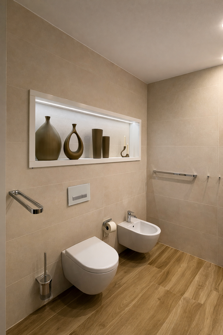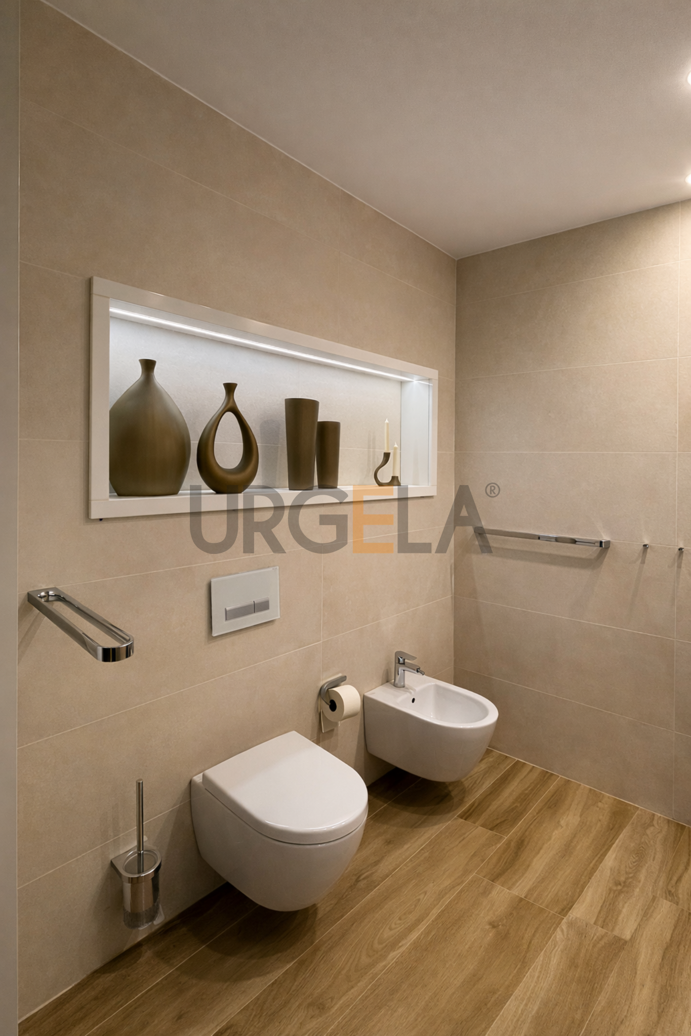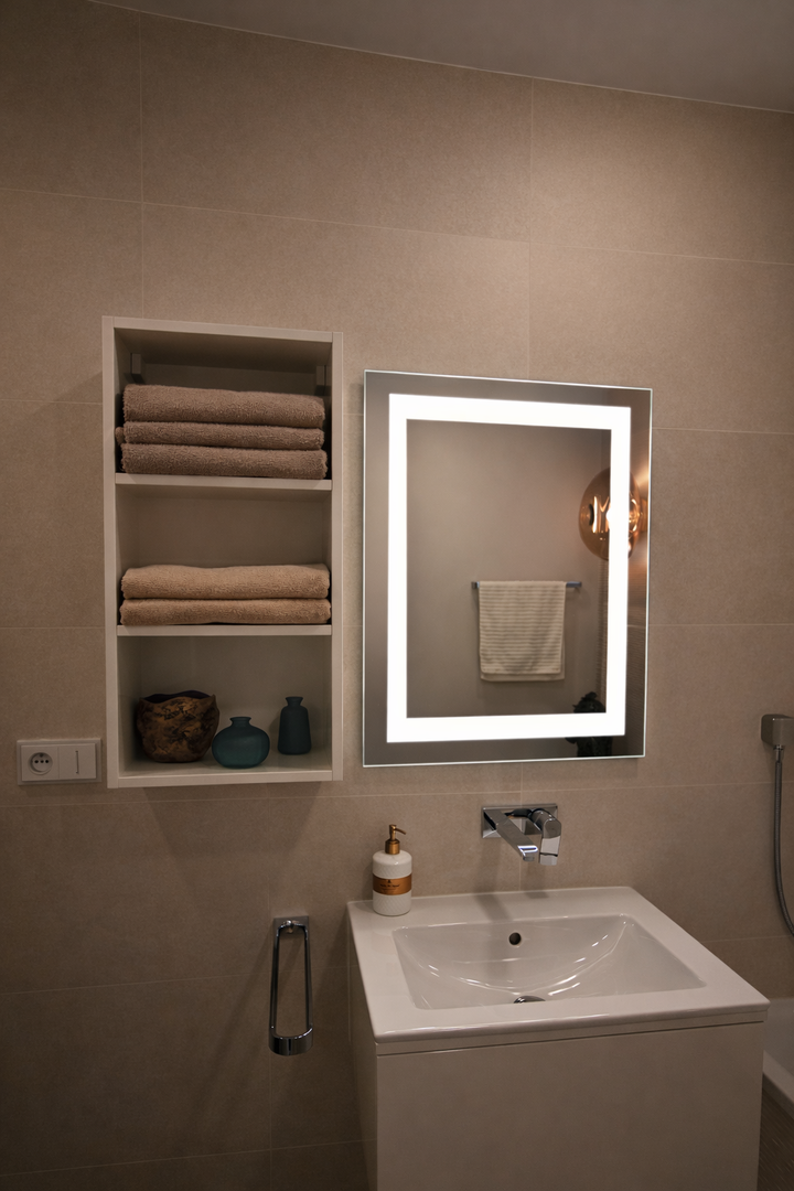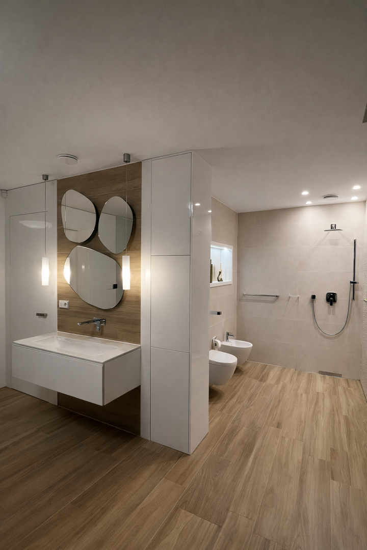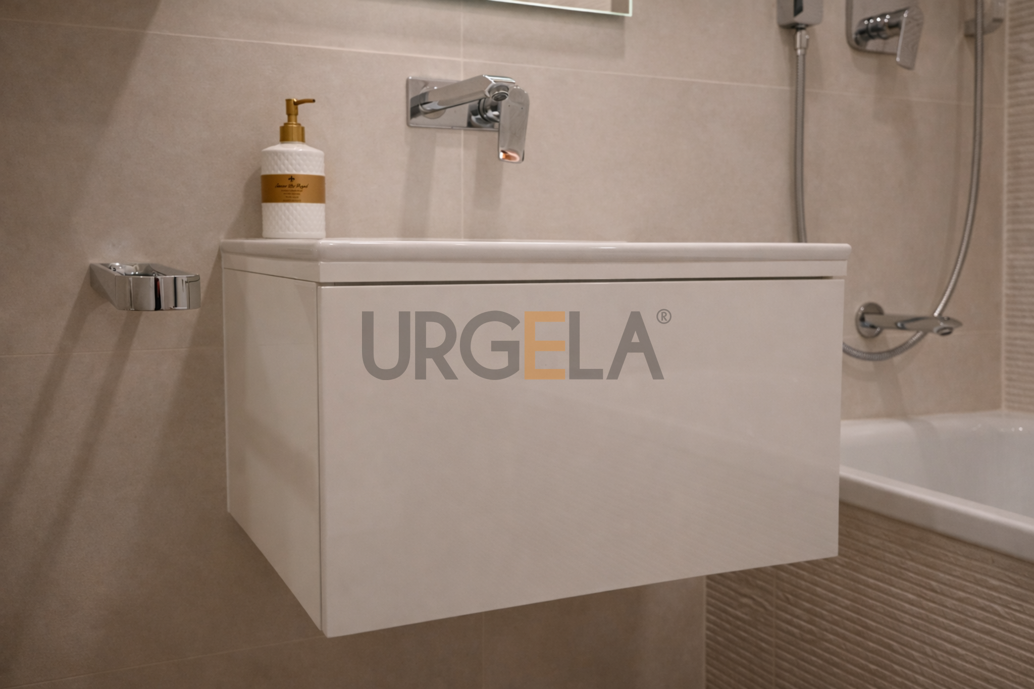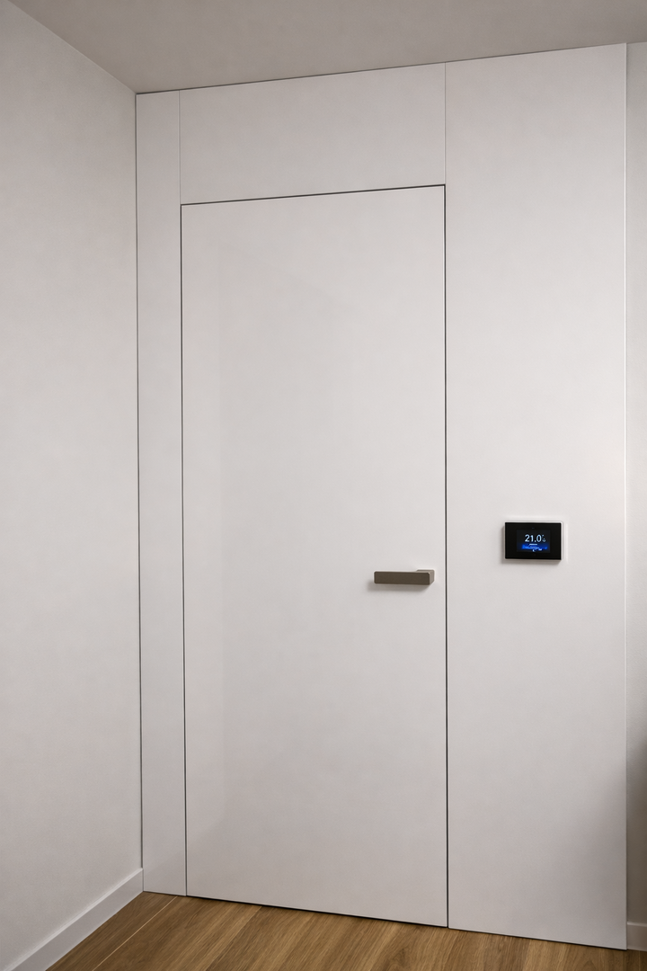 Biela lakovaná kuchyňa na mieru s tmavou kamennou pracovnou doskou. Zaujímavé a nadčasové riešenie veľkej kuchyne na mieru. Biely 7-vrstvový lak a tmavý kameň vytvárajú pekný kontrast. Ukážka praktických úložných systémov nábytku na mieru v kuchyni. Presklené dvierka spodných skriniek vyrobené presne podľa požiadaviek klienta. Samozrejme, nasvietené moderným LED osvetlením. Minimalistické riešenie nábytku na mieru pokračuje aj do priestrannej vzdušenej kúpeľne. Sú tu aj biele lakované interiérové dvere, ktoré dopĺňajú jednotný dizajn nábytku v interiéri. V interiéri nesmú chýbať kvalitné interiérové dvere na mieru.